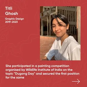 Titli Ghosh (GD Batch 2019-23) has done it once again! She participated in a painting competition organised by Wildlife Institute of India on the topic "Dugong Day". She has secured the first position for the same!