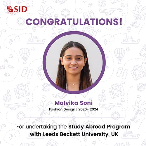 Congratulations and Best Wishes to Malvika Soni, Fashion Design student (Batch 2020-24) for undertaking the Study Abroad Program with Leeds Beckett University, UK from February to June 2023!