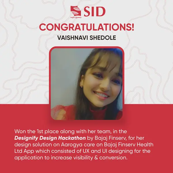We are extremely proud of our 3rd year User Experience Design student Ms. Vaishnavi Shedole for her achievement at the "Designfy Hackathon" organised by Bajaj Finserv Health Ltd.