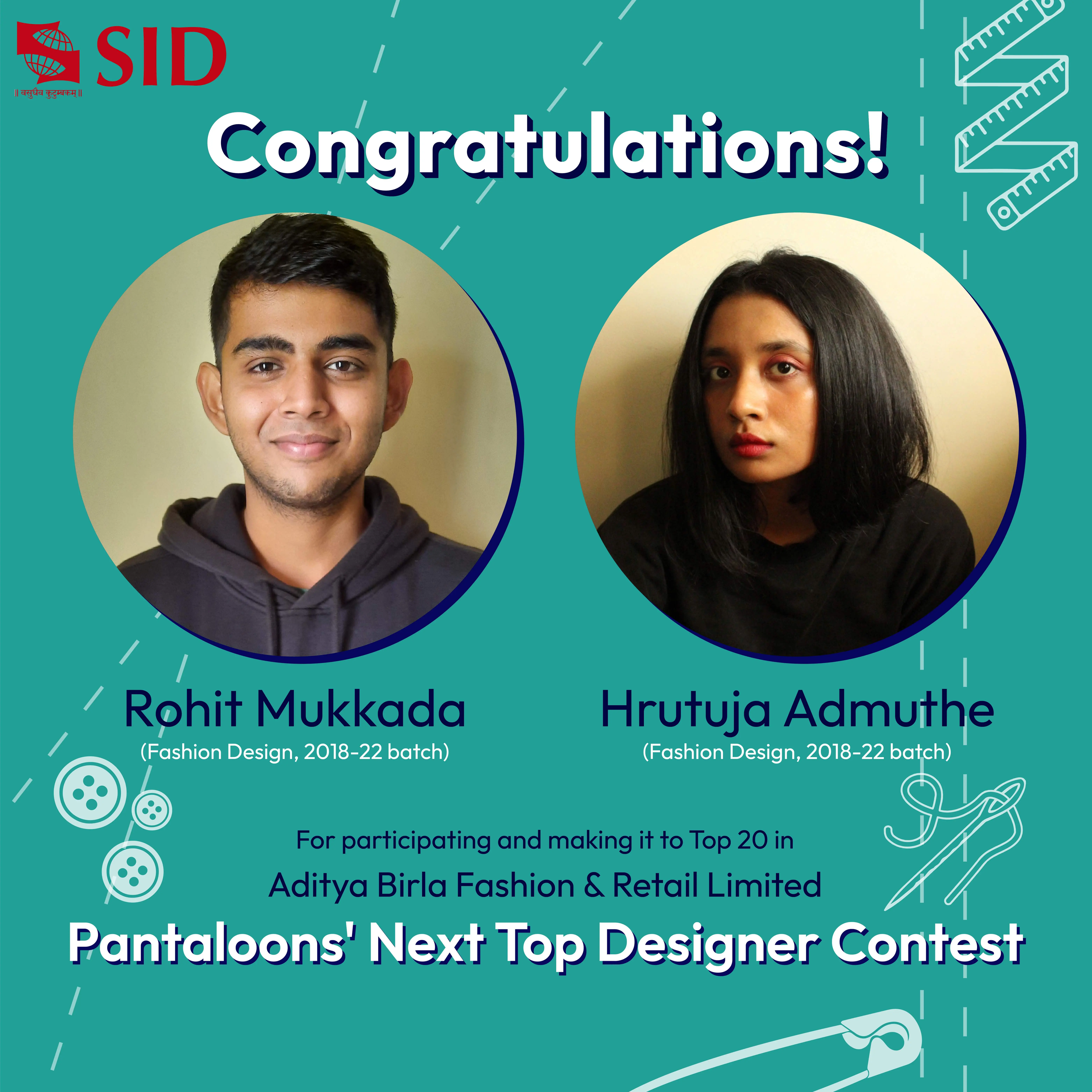 Congratulations on the well deserved success Hrutuja Admuthe & Rohit Mukadda (Fashion Design 2018-22 batch) for your efforts to participate & make it to the Top 20 in the Pantaloons Next Top Designer Contest by Aditya Birla Fashion & Retail Ltd!!