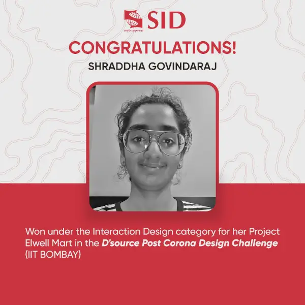 Kudos to Ms. Shraddha Govindaraj, 3rd year- User Experience Design student, for her achievement at the D'Source Post Corona Design Challenge (IIT Bombay).
